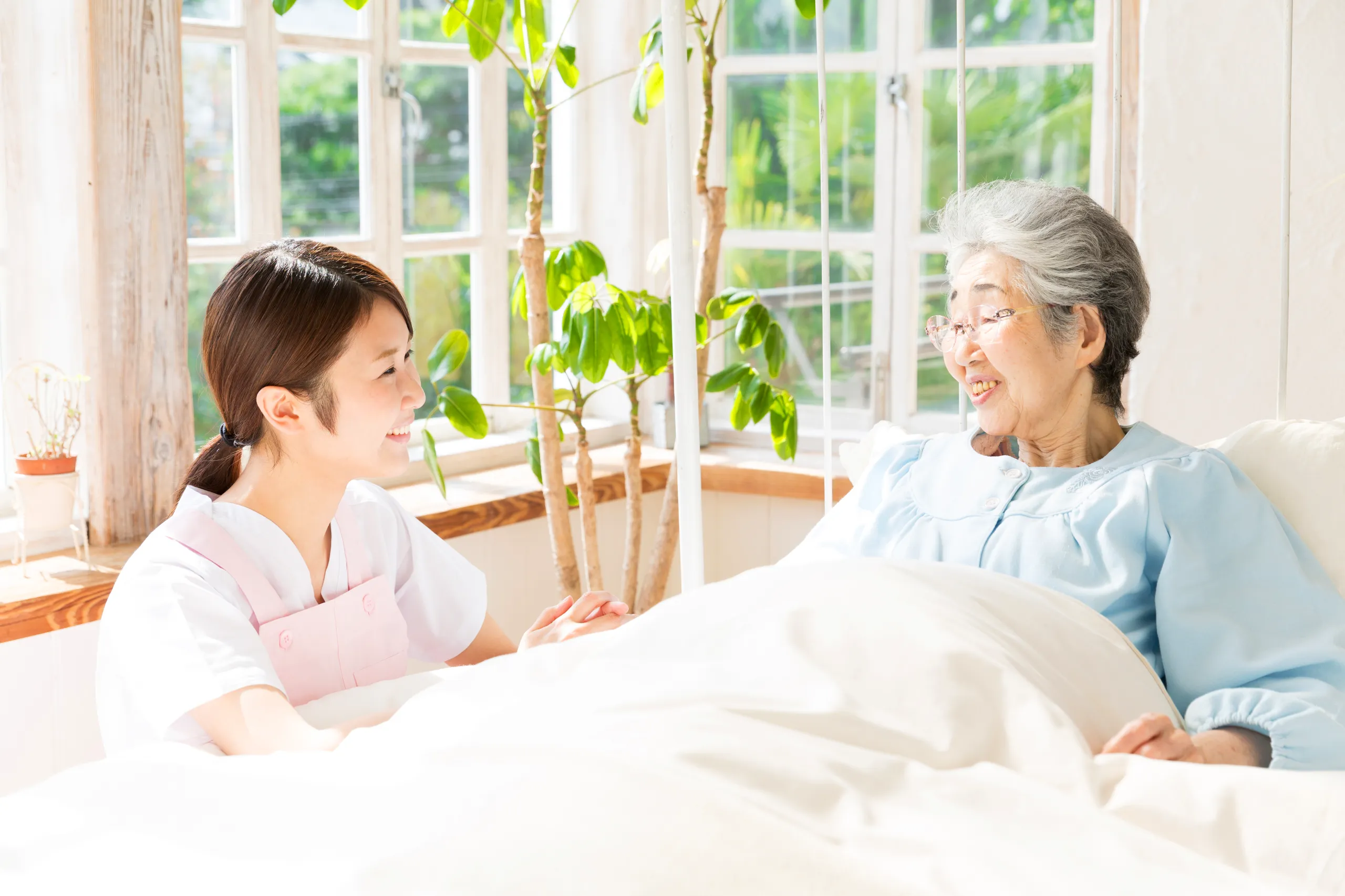 訪問看護は、病気の重さや年齢に関係なく、医師の指示のもと幅広くご利用可能。