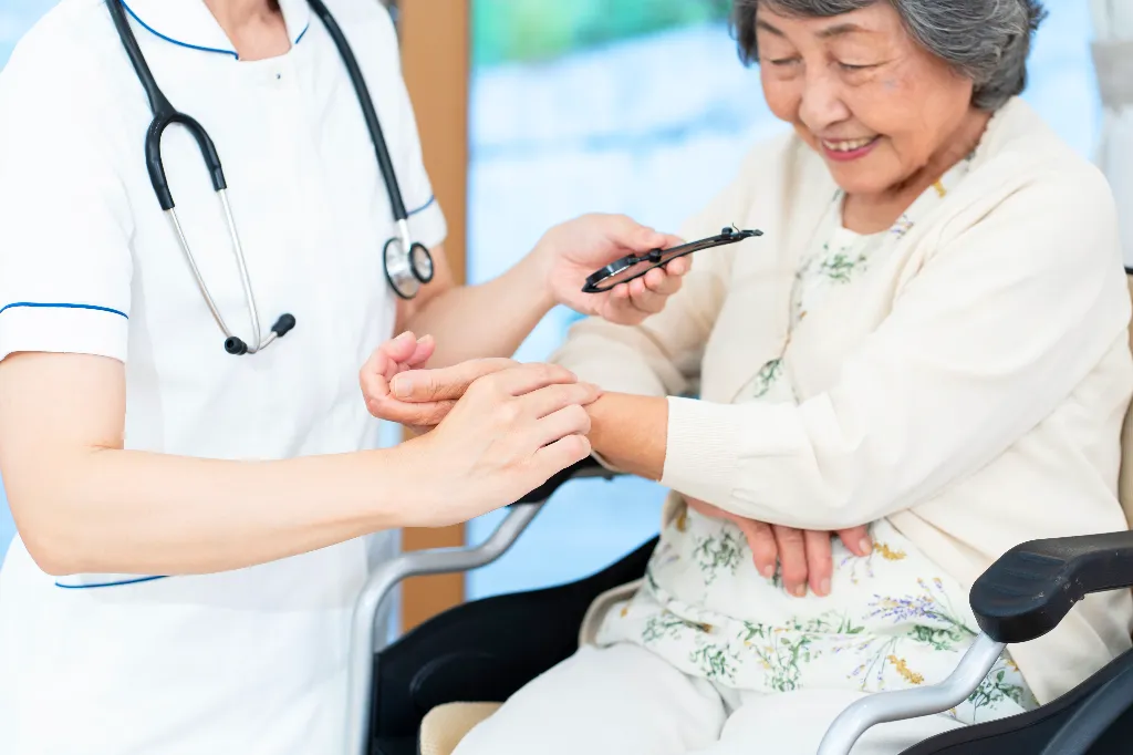 医師の指示書に基づき、服薬管理やバイタルチェック、点滴やカテーテル管理など、さまざまな医療的サポートを行っています。